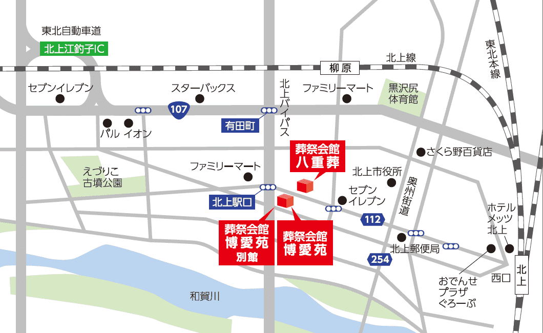 会館のご案内 HOME 会館のご案内 様々なご要望にお応えできる3つの式場 博愛苑Hakuaien 岩手県北上市大通り4丁目8-34 博愛苑別館Bekkan 岩手県北上市大通り4丁目8-34 八重葬Yaesou 岩手県北上市大通り4丁目7-2